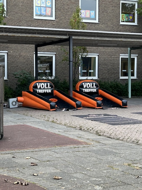 Am Montag, den 30.09.2025, verwandelte sich unser Schulhof in eine große Sport- und Spiel-Arena. Das Trixit-Team baute verschiedene Bewegungsstationen für uns auf. Insgesamt gab es 6 Stationen, an denen wir uns richtig austoben konnten: Menschenkicker, Völkerballfeld, Basketballkörbe auf dem Luftkissen, Lukissen-Kletterparcour, Känguru-Weitsprung, Schnelles Flitzen und Feldhockey. Die ersten/zweiten und dritten/vierten Klassen zogen als Zweierteams von Station zu Station und versuchten eifrig Punkte zu sammeln um die Punktzahl für die mega, sportliche Schule zu knacken. Dabei kam es neben Schnelligkeit, Geschicklichkeit und Ausdauer vor allem auch auf Fairness an. Am Ende des Tages gab es nicht nur ausgepowerte, glückliche Rosini-Kinder, sondern es erhielt jede Klasse eine Klassenurkunde und am nächsten Tag jedes Kind ein Teilnahmeurkunde zur Erinnerung an einen wirklich bewegten Trixit-Tag.